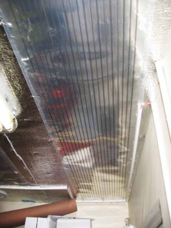 В начале по всей поверхности потолка плотно крепится с перехлестом изолон, чтобы не было утечек тепла. Затем через изолон к потолку без провисаний крепится ПЛЭН, либо пластиковыми шурупами, либо мебельным степлером в зависимости от структуры потолка. Не допускается нарушение проводников - это тонкие темные полосы.