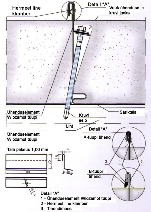 1 - tihendamine silikoonmassi abil. Tugiplaadi paksus 0,5 - 0,55 mm. Lubatud luku suuruste kõrvalekalle ± 0,2 mm.