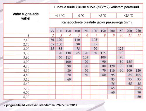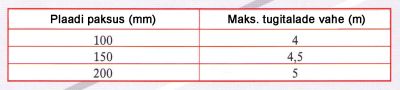 g - seinaplaadi paksus (50; 75; 100; 125; 150; 200; 250; 300)