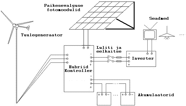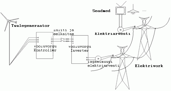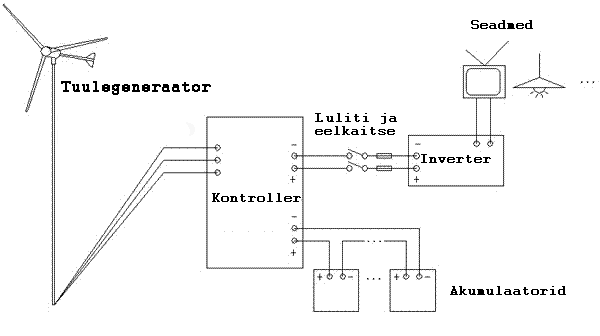 Lisaks skeemidel märgitud elementidele kuulub tuuleenergia-seadmete juurde termosoojenduselement ja tormikaitse seade.